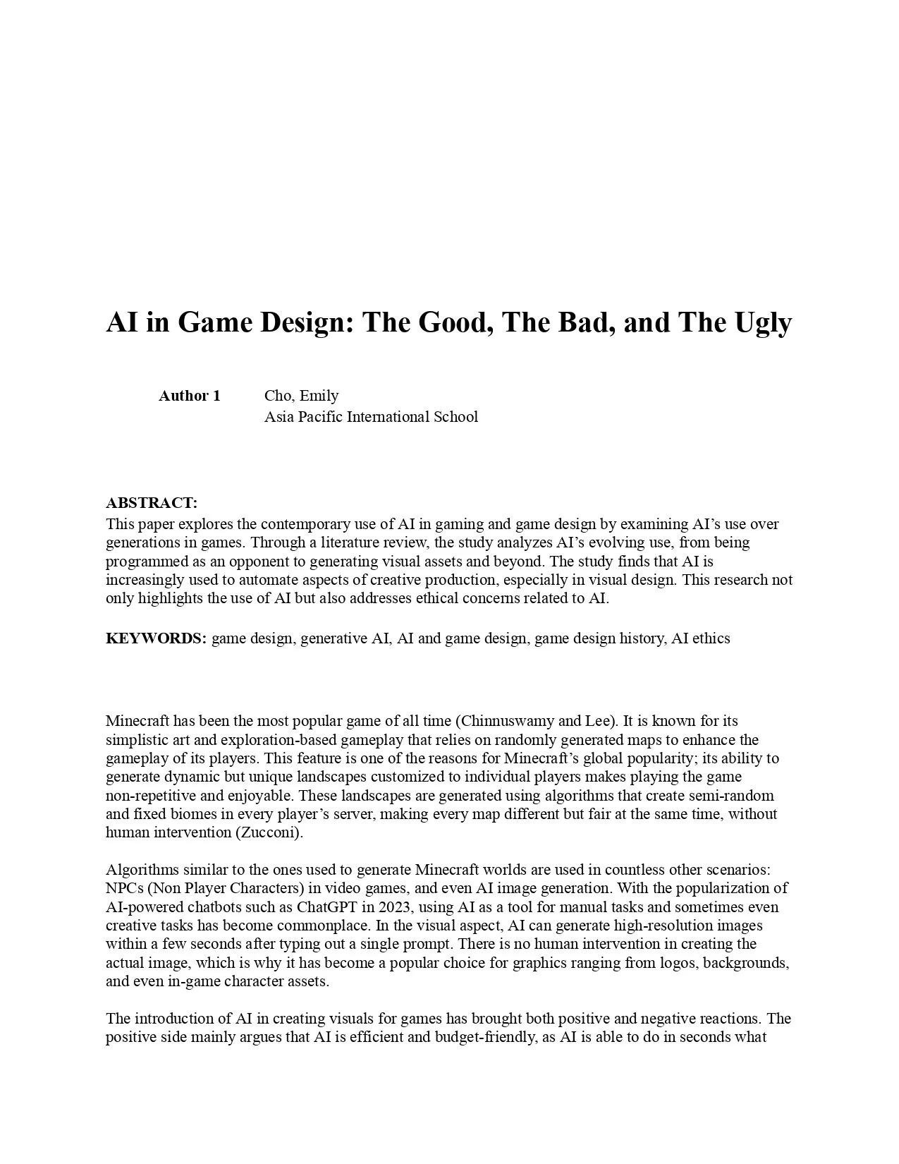 Researched and presented AI in video game development, analyzed impact on design efficiency and employment, evaluated cultural reception of AI-generated assets, and received guidance from senior game designers at SuperVillain Labs.